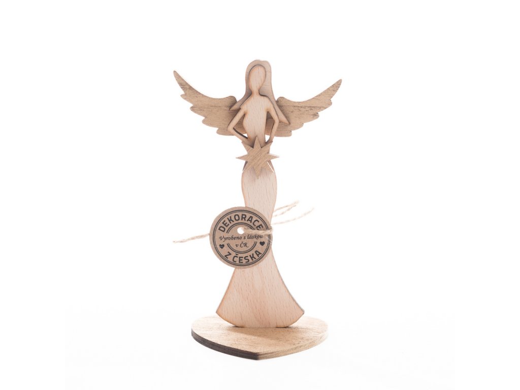 Dřevěný anděl s hvězdičkou v ruce jako krásná vánoční dekorace nebo dárek pro vaše blízké.