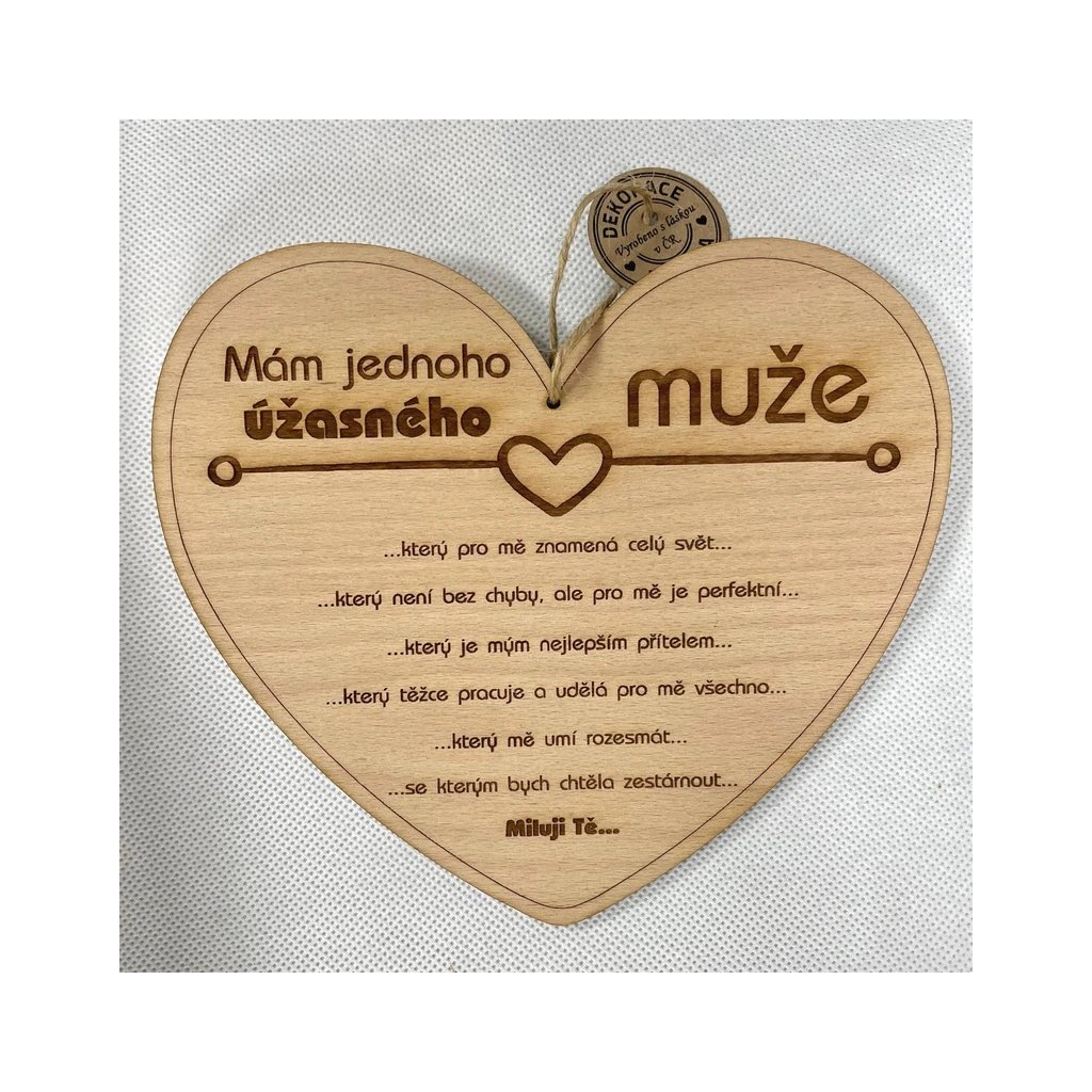 - Dřevěné srdce 20 cm s gravírovaným textem pro úžasného muže