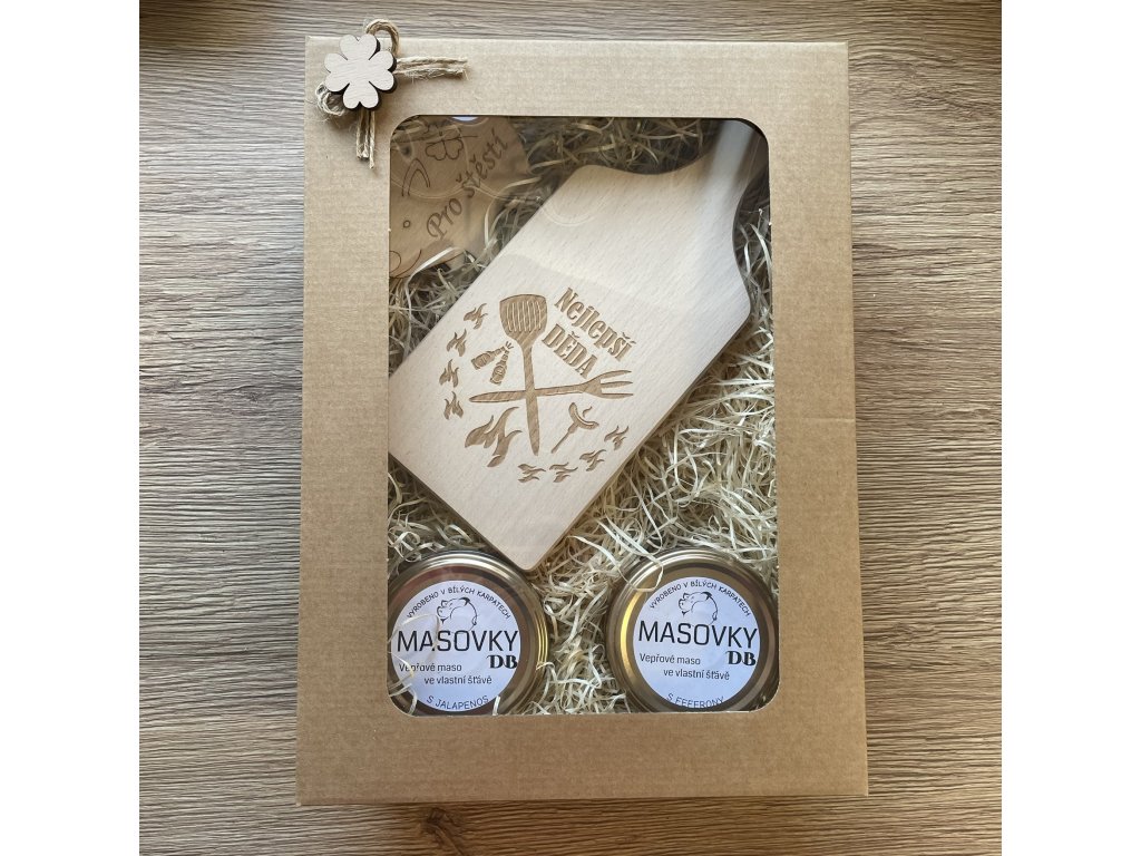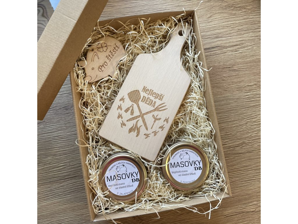 1x dřevěné prkénko s věnováním Bezva děda