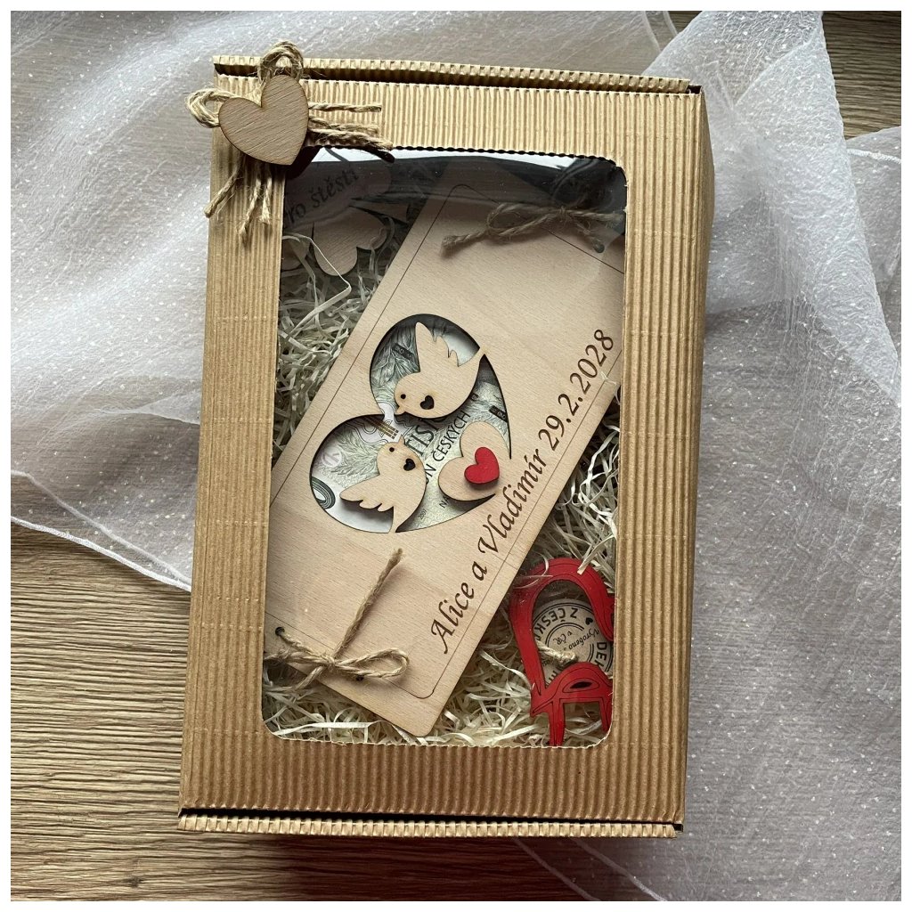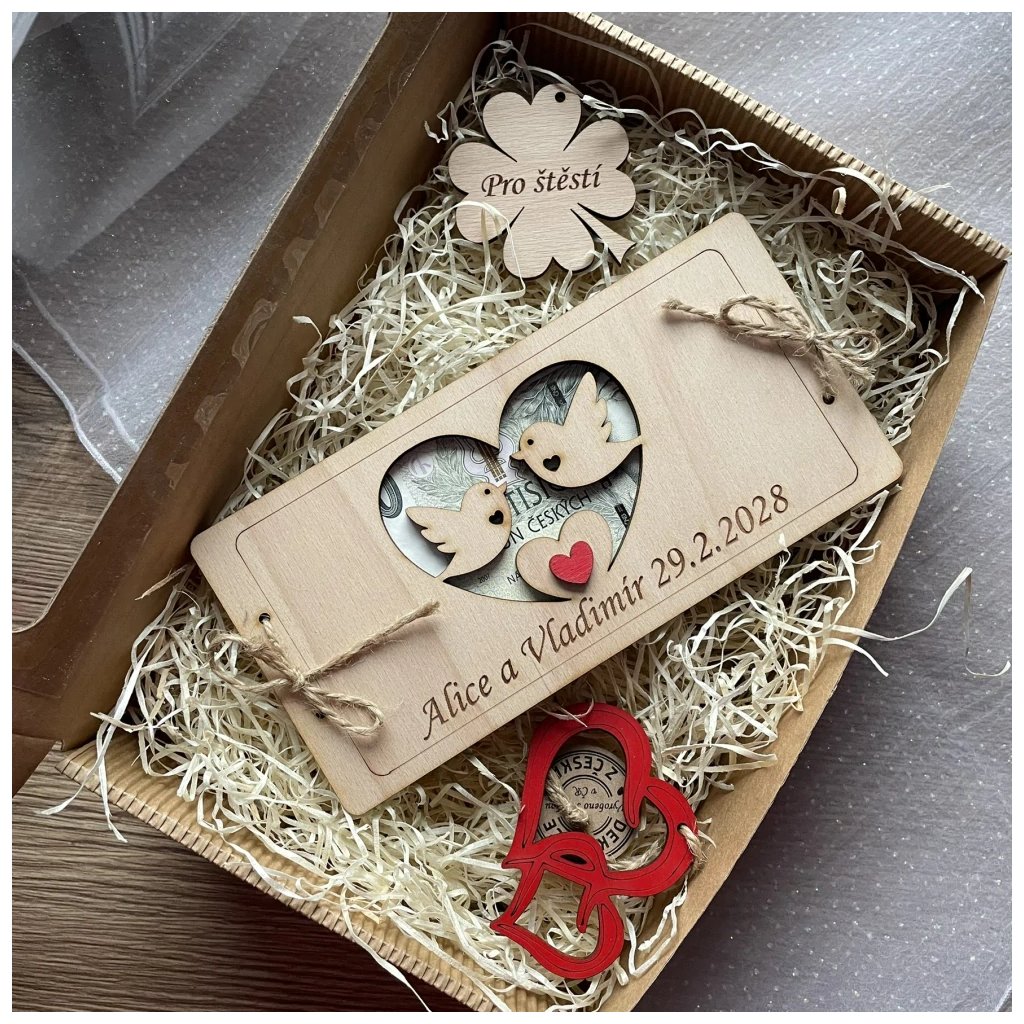 - Dřevěné přání na bankovky s vlastními jmény - uveďte do poznámky k produktu v košíku objednávky - VYŽADOVÁNA PLATBA PŘEDEM