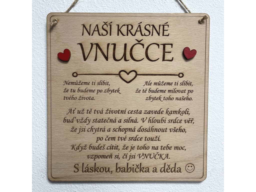 Dřevěná cedulka s milým textem pro Vaši vnučku. Ukažte jí, že ji máte rádi.