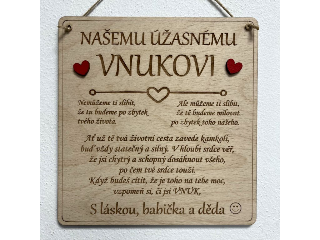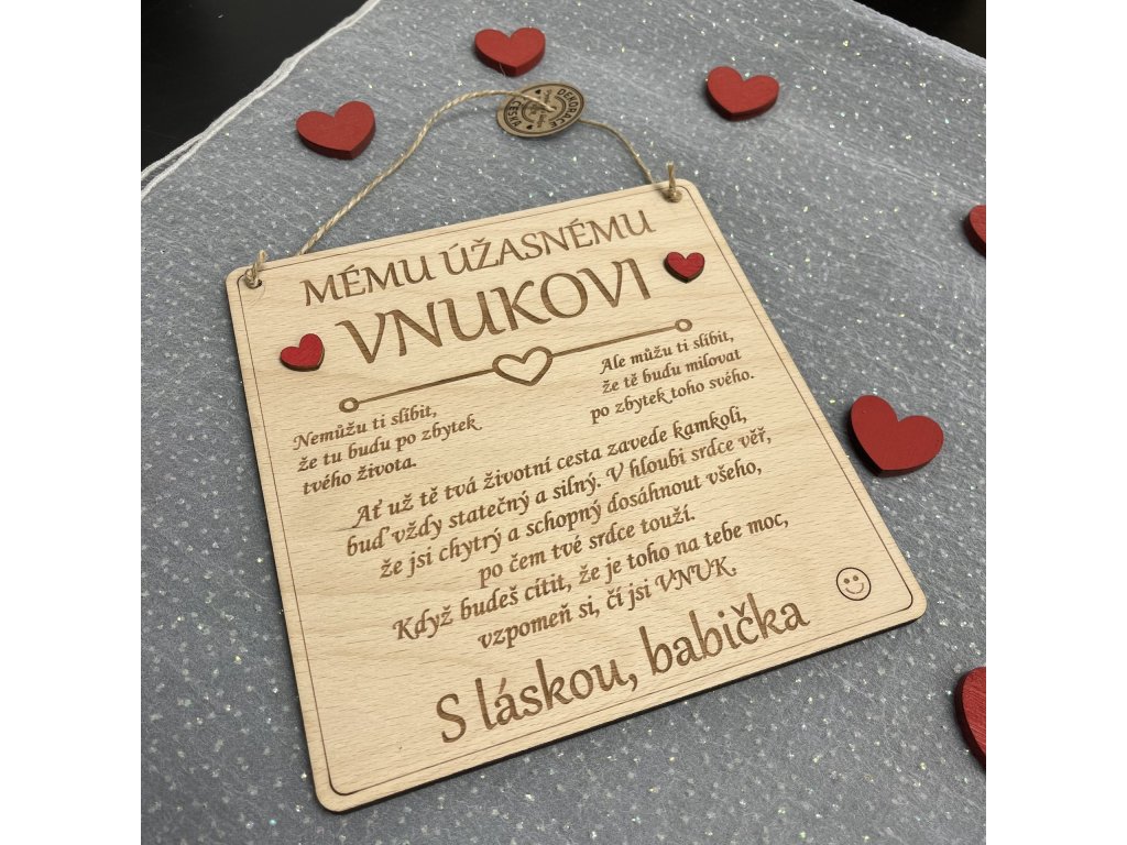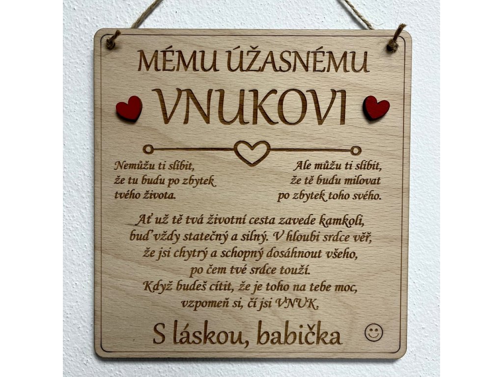 Dřevěná cedulka s milým textem pro Vašeho vnuka.