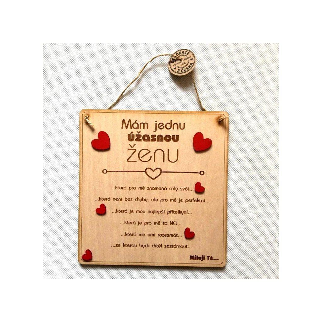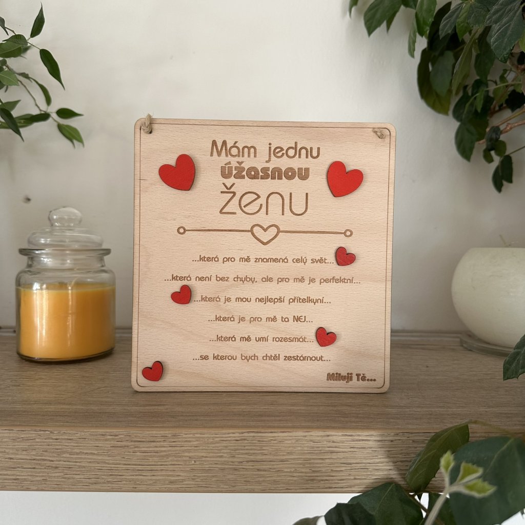 Stylová dřevěná cedulka s vyznáním pro Vaši skvělou ženu, lásku, přítelkyni. Možnost vlastního podpisu - personalizace.