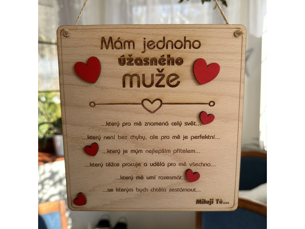 Dřevěná cedulka s milým textem pro Vašeho manžela, přítele, milého.