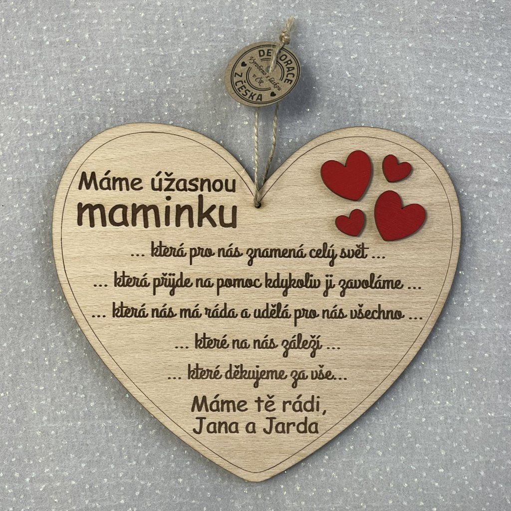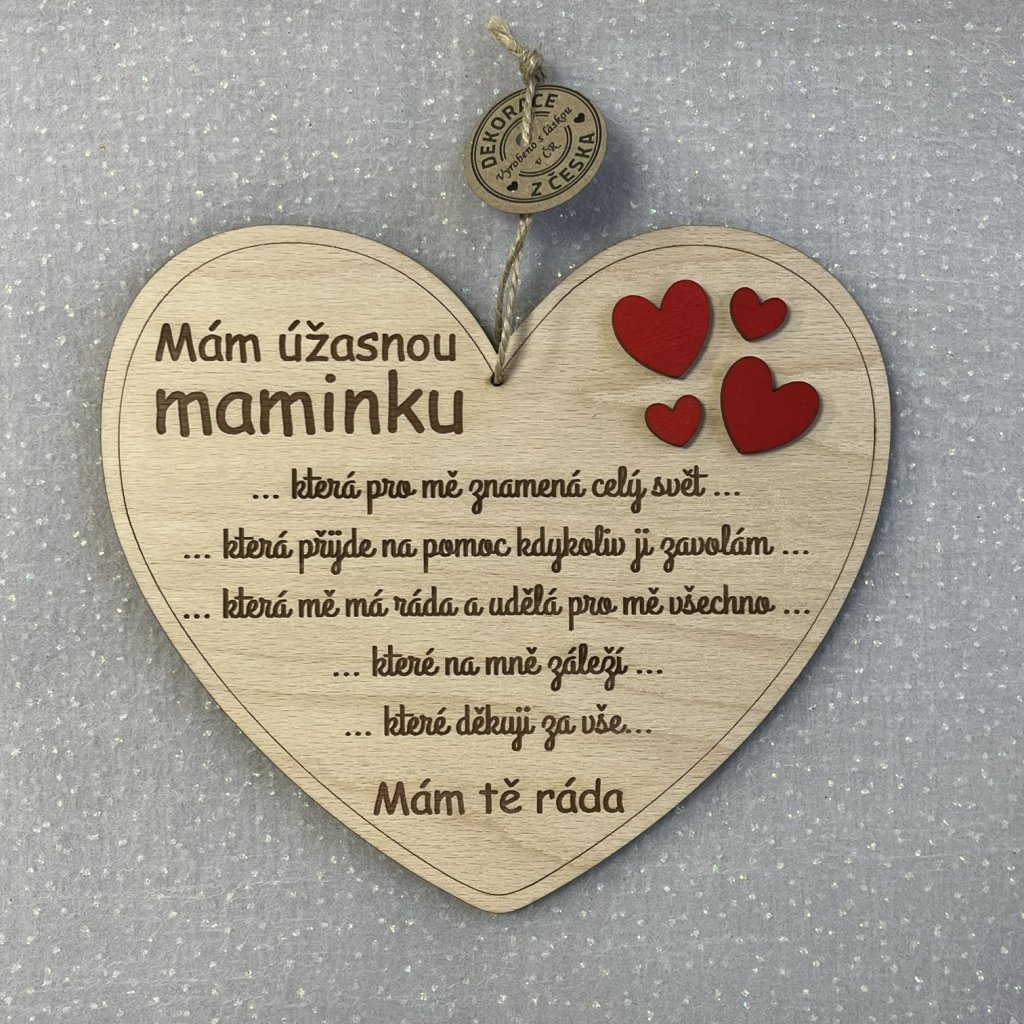 Dřevěné srdce s milým textem pro Vaši maminku, které jí udělá radost a potěší na srdci. Ukažte jí, že ji máte rádi a záleží Vám na ní.