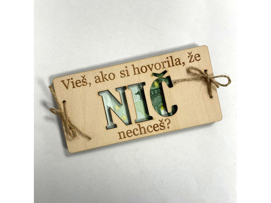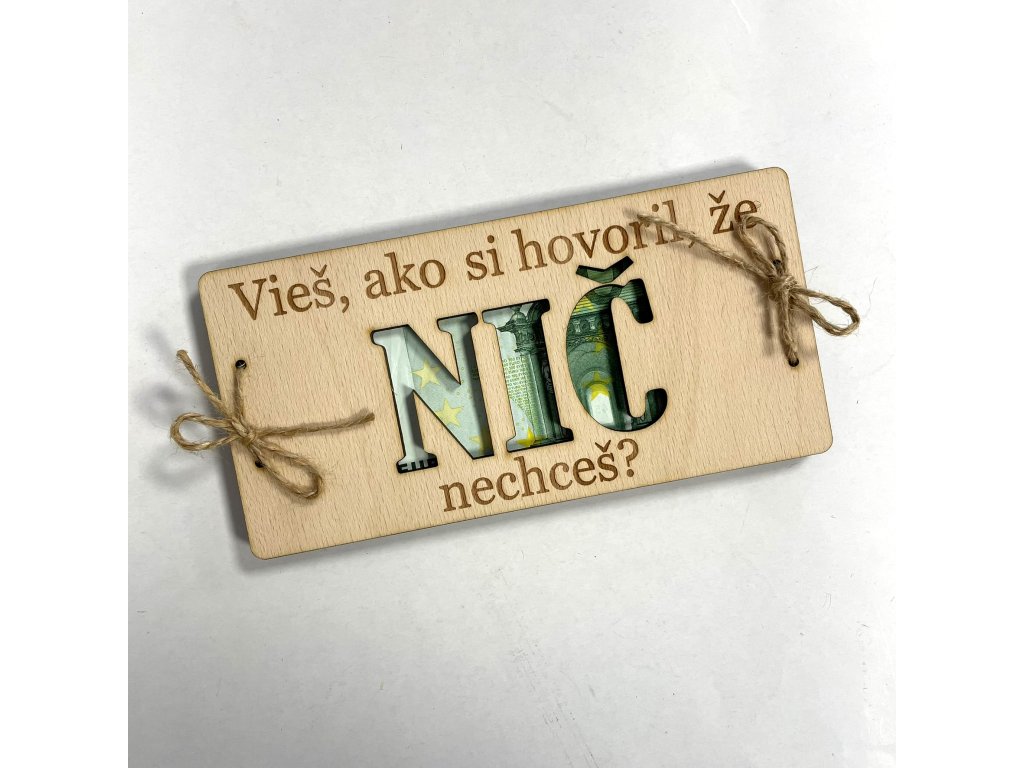 Dřevěné přání na bankovky NIČ nechceš? (PRO ŽENU/ PRO MUŽE/MNOŽNÉ ČÍSLO)