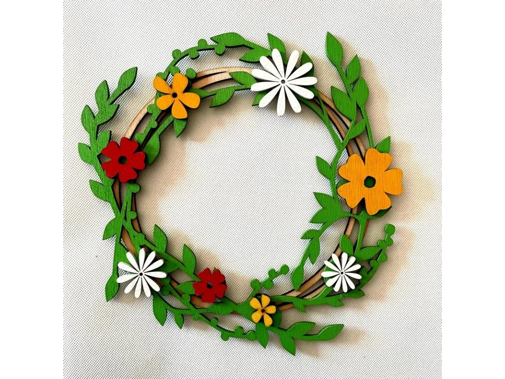 Dřevěný věnec 30 cm vrstvený + květiny barevný, 3 varianty