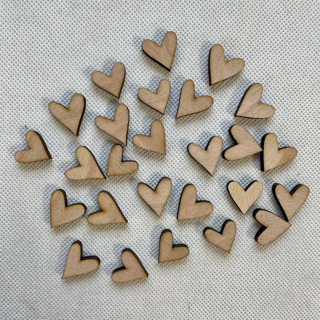 Mix 2 cm nebo 2,5 cm dřevěných srdíček 100 ks Dřevěná srdíčka na vývazky