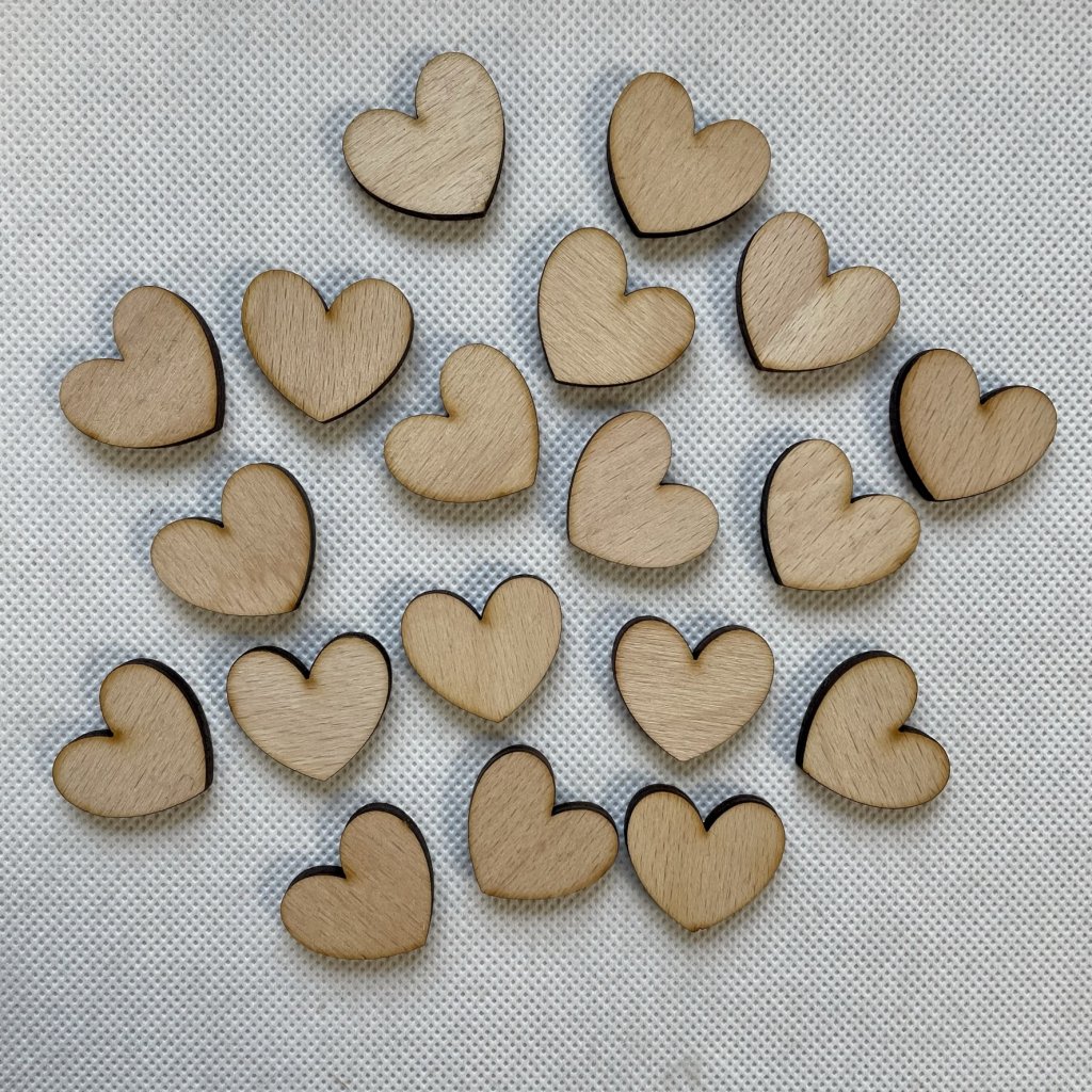 Mix 3 cm dřevěných srdíček 100 ks Dřevěná srdíčka na vývazky