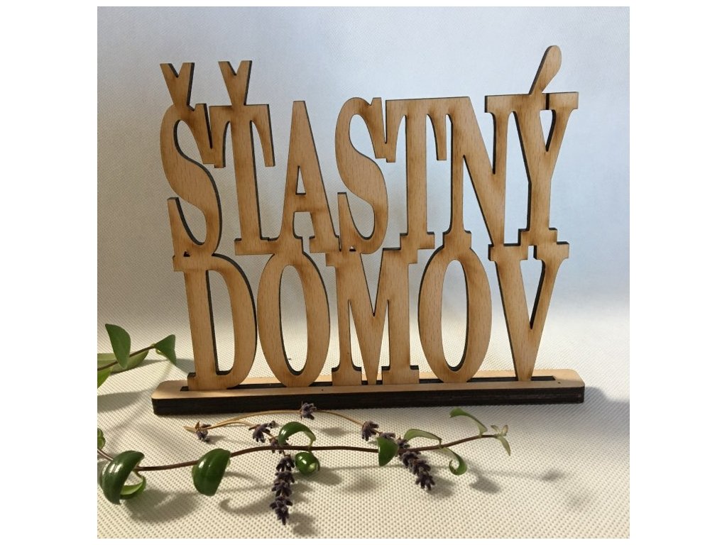 Nápis Šťastný domov ve stojánku 22 cm, 2 barvy Dřevěný nápis Domov na stůl