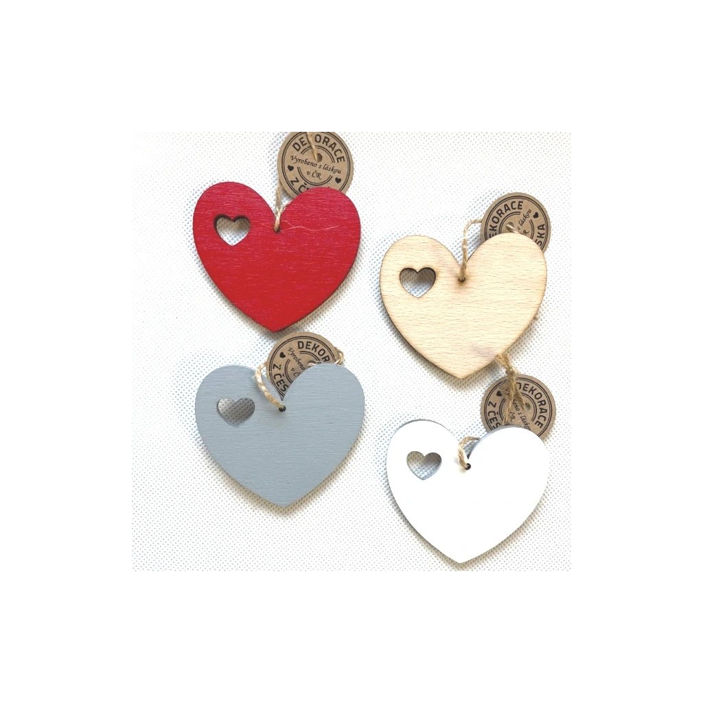 Srdíčko na zavěšení s vyřezávaným srdíčkem. Více barevných variant, zvolte v roletce nabídky.