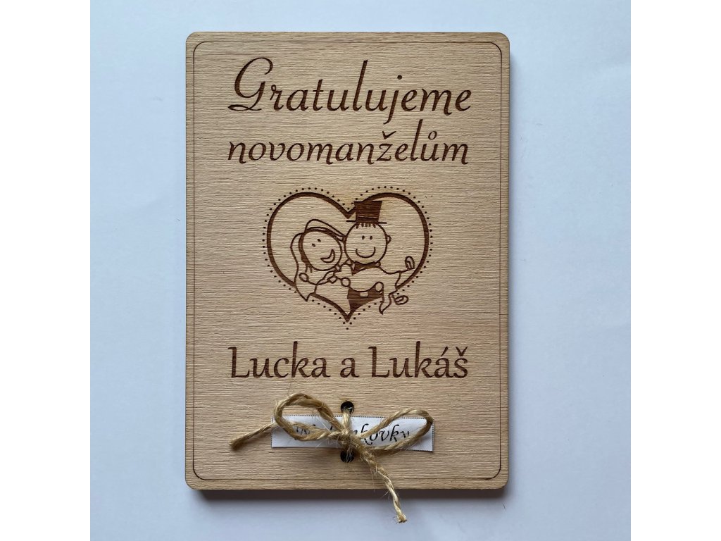 Chcete věnovat bankovky novomanželům originálně? Vyberte si z našich dřevěných přáníček.