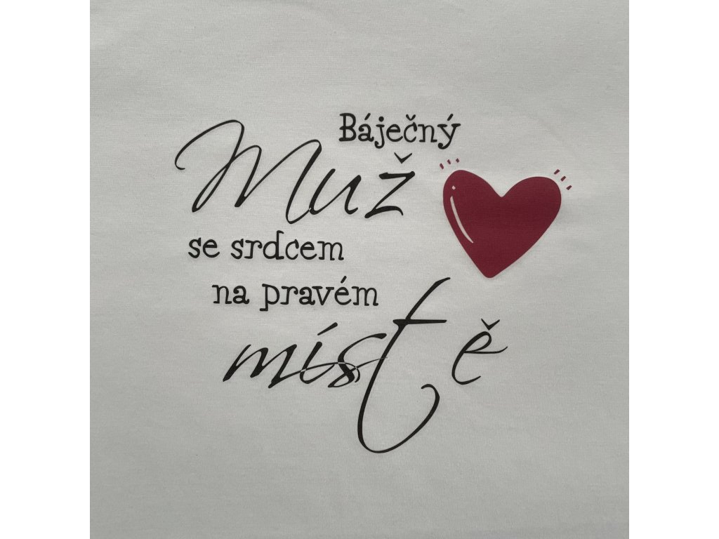Kvalitní pánské tričko s potiskem Báječný muž se srdcem na pravém místě bude originálním dárkem pro vašeho manžela, přítele, kamaráda, tatínka.