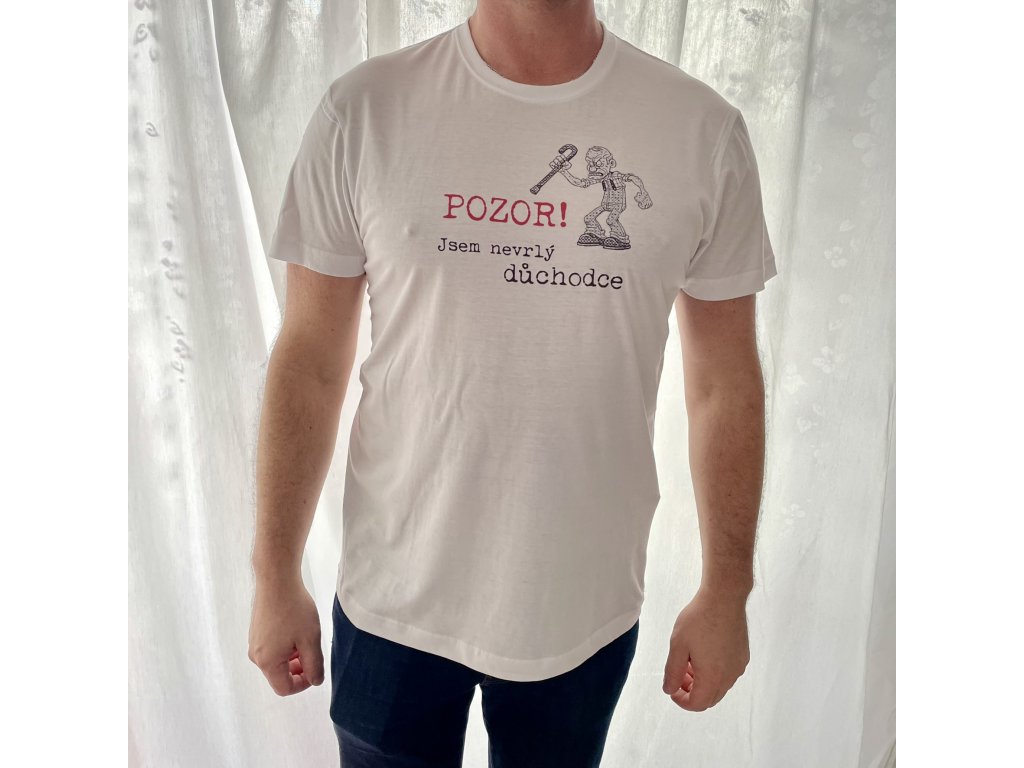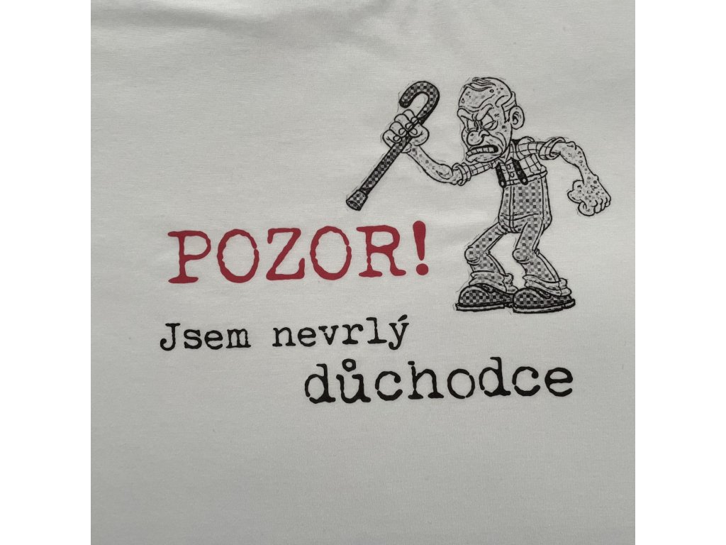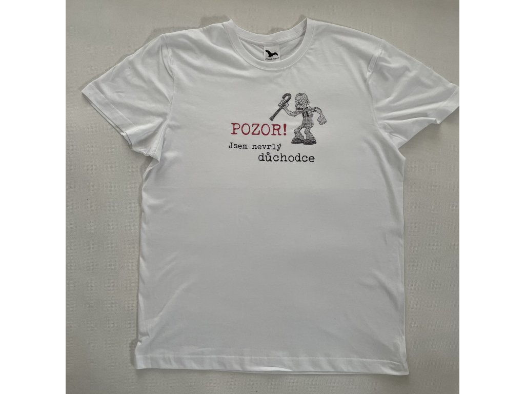 Kvalitní pánské tričko s vtipným potiskem bude dokonalým dárkem pro toho, kdo si nebojí udělat ze sebe legraci a je v důchodu.