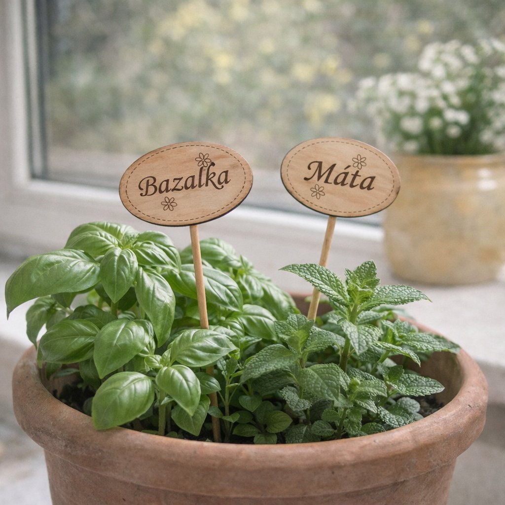 Dřevěný zápich do bylinek označí v květináči vaše oblíbené bylinky.