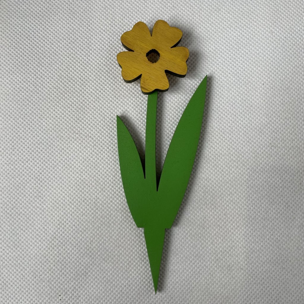Dřevěná květina o rozměru 15 cm na zápichu ozdobí jarní truhlíky a květináče, a neuvadne :-)